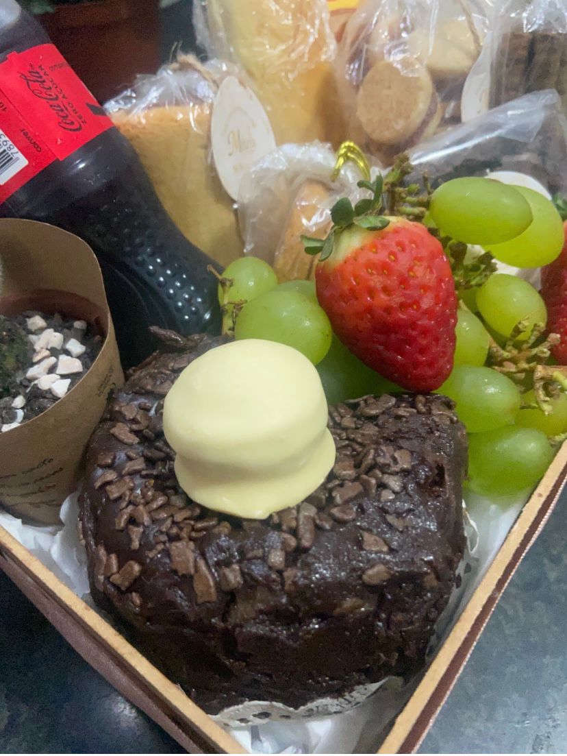• 1 mini bolo artesanal (sabores: chocolate, cenoura, milho ou massa branca)